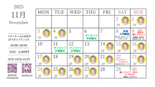 手相診断「咲田笑見 手相診断」11月 詳細はイオンモール広島府中ホームページ〈イベントニュース〉をどうぞ咲田笑見の鑑定内容などは Instagram からどうぞ 咲田笑見Instagram2025.10.25手相診断