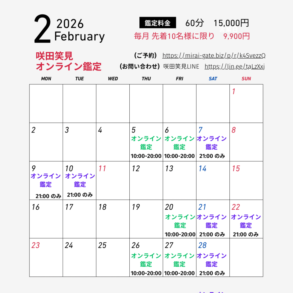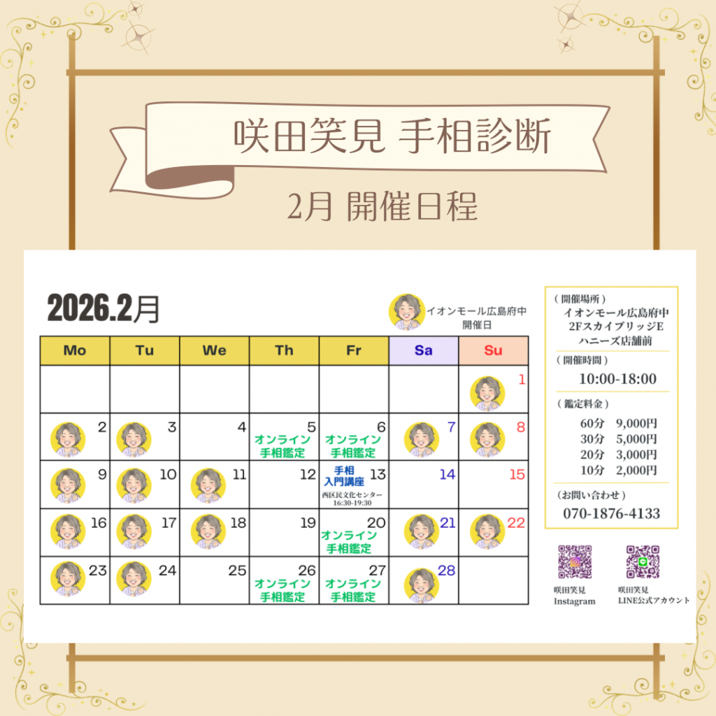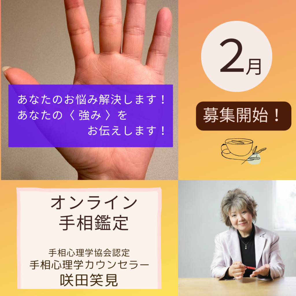 「咲田笑見 手相診断」「オンライン鑑定」2月